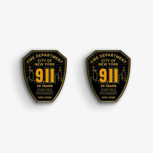 - Design: FDNY emblem, two waving flags, “PRIDE • HONOR • COURAGE,” and “343”